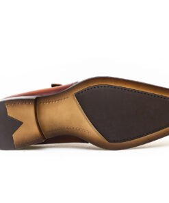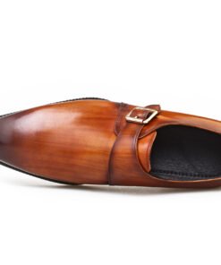 Refined and sophisticated, these Tan Leather Single Monk Strap Shoes for Men are crafted for the gentleman who appreciates timeless elegance. Made from premium full-grain leather with a hand-polished finish, they feature a sleek silhouette and are accented by a silver-tone horsebit detail — a subtle nod to classic European style.